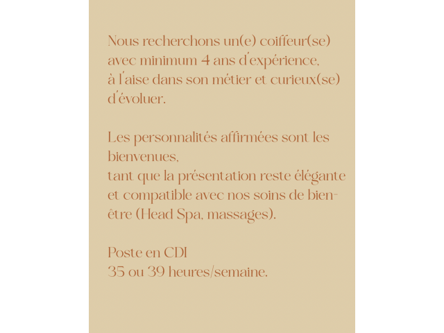 Nous recherchons un(e) coiffeur(se) expérimenté(e) titulaire du BP,